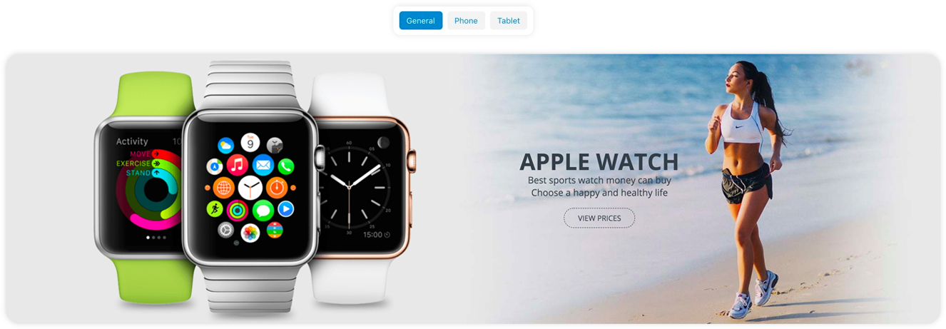Here’s how the desktop homepage main slider banner looks like with the same content on phones and tables, as well as how it looks like with totally diffrent conent on phones and tablets: