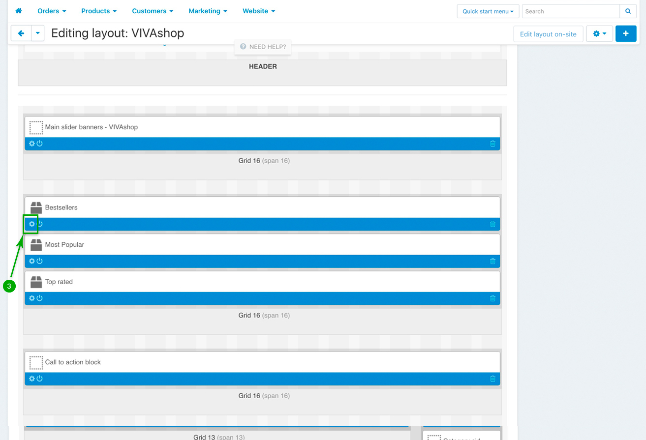 Scroll down and look for the “Bestsellers” block, and click on the “Block options” of this block