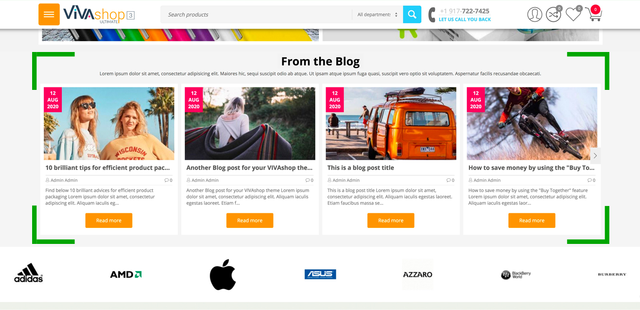On the VIVAshop theme homepage you can display a scroller with any articles you have created in your blog. Follow the steps below in order to learn how to add blog posts to your homepage blog scroller, as well as how to configure it: