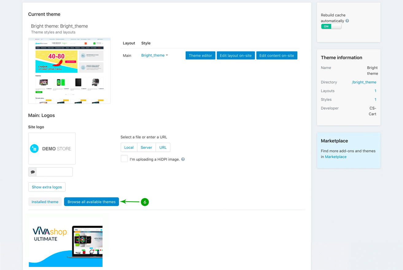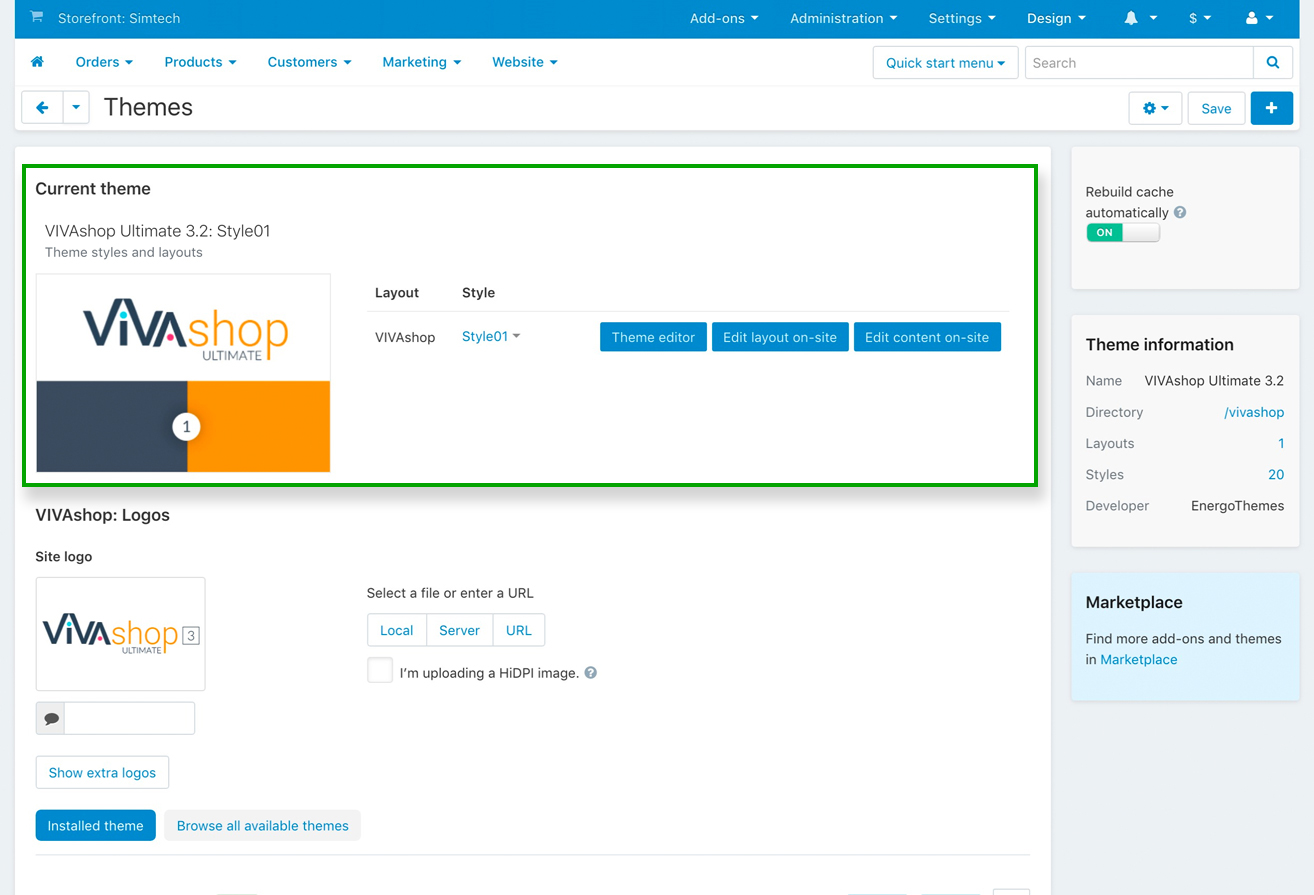 After installing all of the add-ons that came with the theme, it’s time to install the VIVAshop Ultimate theme package. In this example we'll show how to install the VIVAshop Ultimate package, so please follow the steps below in order to install the theme on your site: