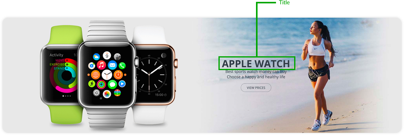 - Center - Place the title text in the center, inside the Info Block (this is the option that we have selected for the demo “VIVAshop - Homepage - Main slider - Banner 1” banner)