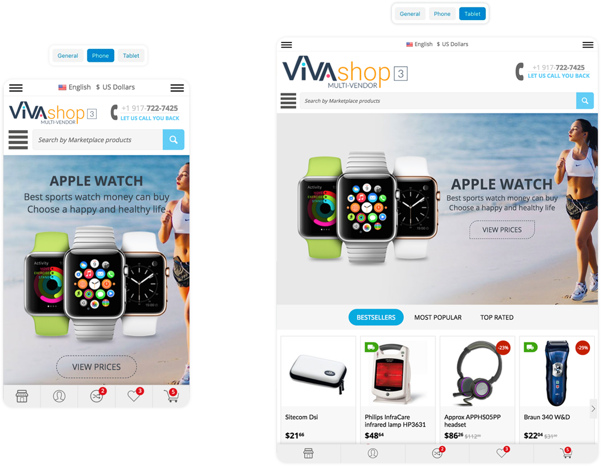 Here’s how the desktop homepage main slider banner looks like with the same content on phones and tables, as well as how it looks like with totally diffrent conent on phones and tablets: