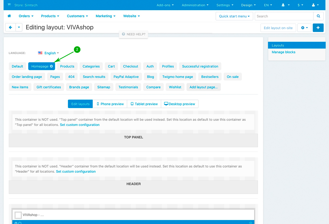 In your admin panel, go to "Design” - "Layouts”: