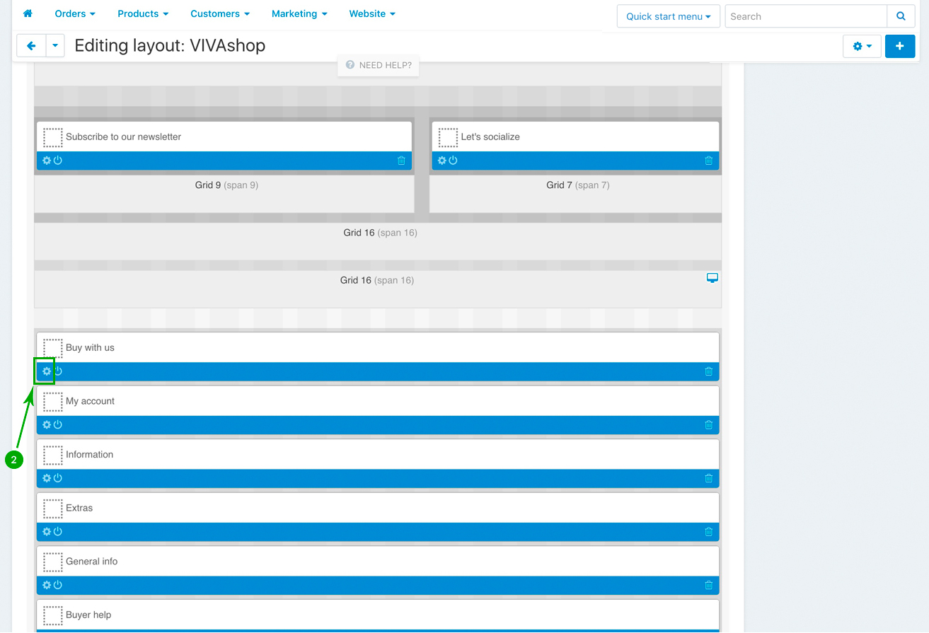 Repeat the steps above in order to add content to all of the other blocks in the the footer of your VIVAshop Ultimate.