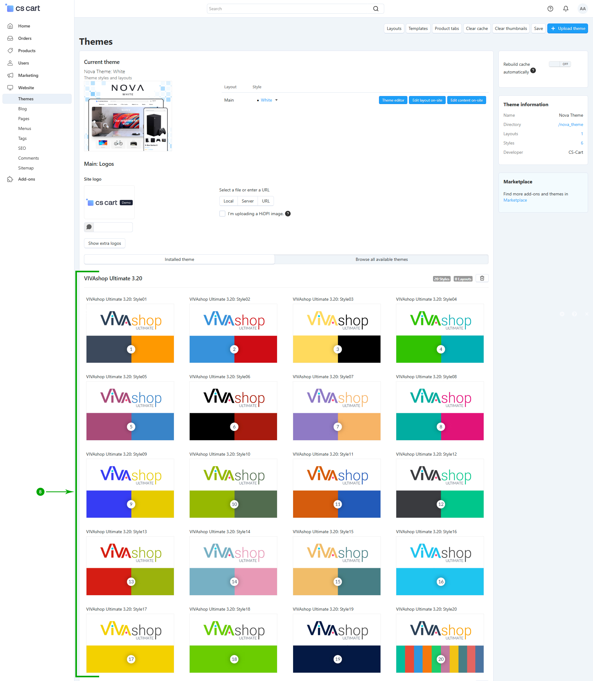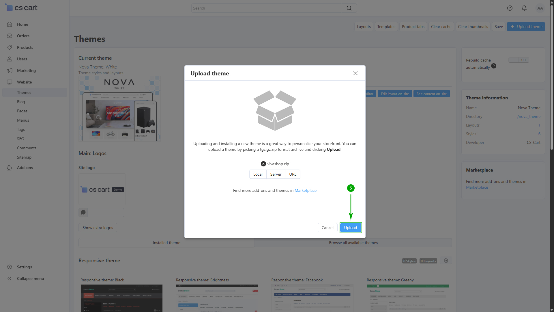 After installing all of the add-ons that came with the theme, it’s time to install the VIVAshop Ultimate theme package. In this example we'll show how to install the VIVAshop Ultimate package, so please follow the steps below in order to install the theme on your site: