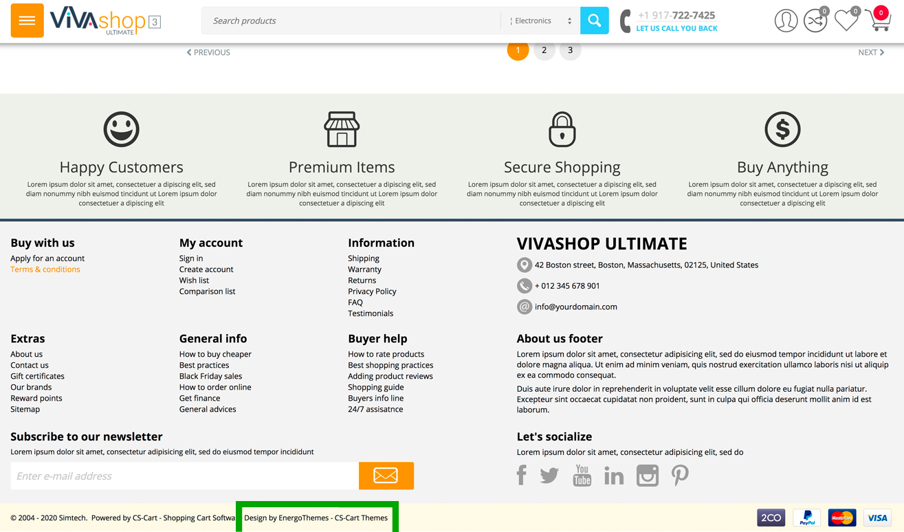 VIVAshop contains a “Design By EnergoThemes - CS-Cart Themes” link back to our website. This link is placed in theme footer.