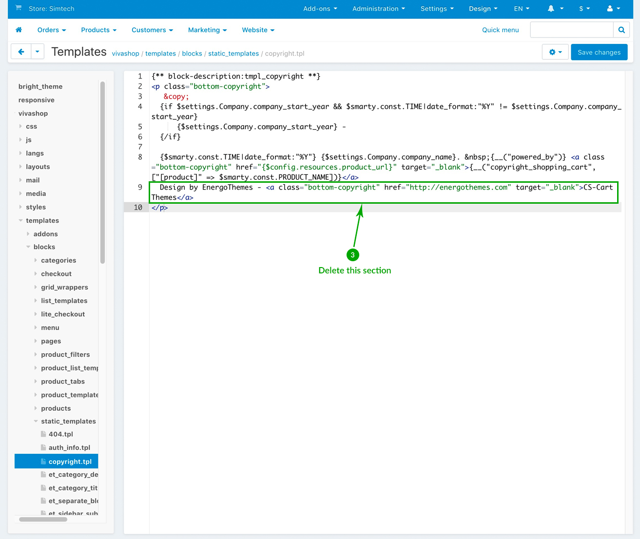 To remove the “Design By EnergoThemes - CS-Cart Themes” link from the footer of your VIVAshop Ultimate, please follow these steps: