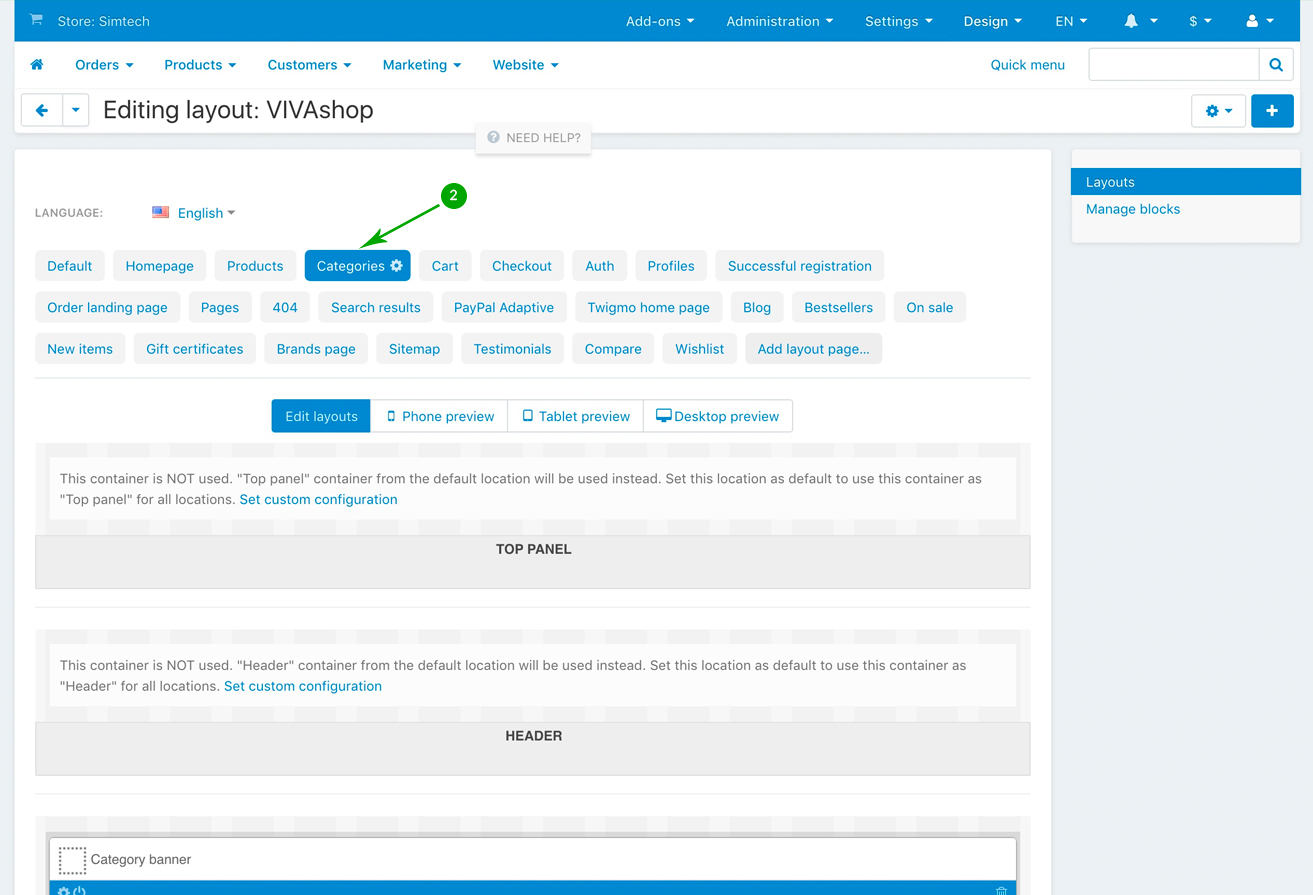 In your admin panel, go to "Design” - "Layouts”: