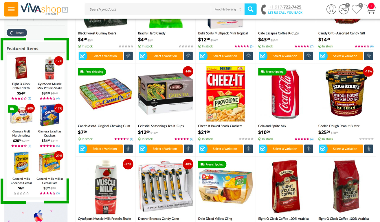 On the sidebar of various pages, like category pages, content pages, blog post pages, etc.., we have included two blocks with items displayed in small sizes, where you can add whatever products you want, so you may emphasize or feature certain items. You can can actually add any number of such blocks, as well as any number of items in each block.