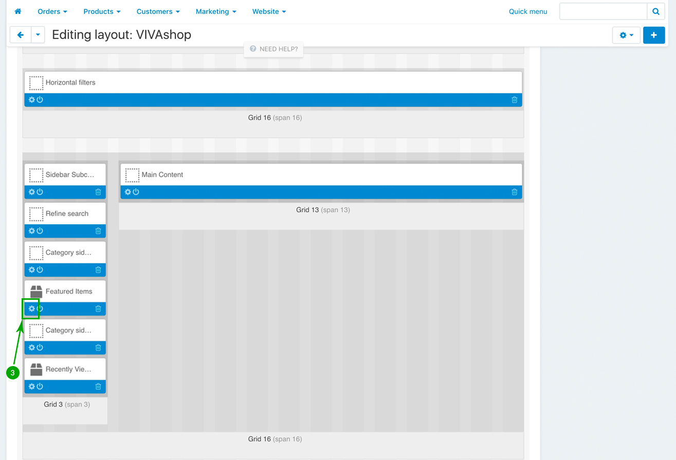 Scroll down and look for the “Featured Items” block, and click on the “Block options” of this block