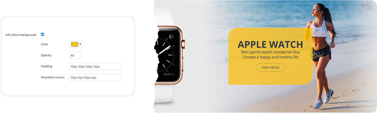 - Color - From the color picker choose the color for your Info Block background (we used a yellow color for the background)