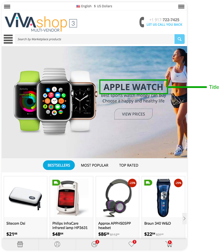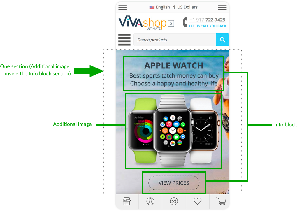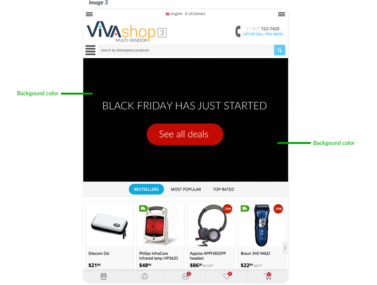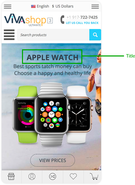 For the “VIVAshop - Homepage - Main slider - Banner 1” banner we have chosen the “Bottom” option, so the Additional Image will come from the bottom.