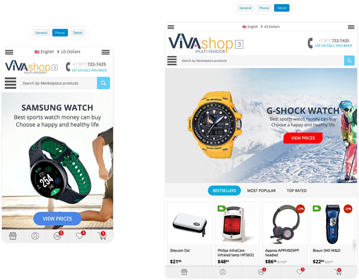 Here’s how the desktop homepage main slider banner looks like with the same content on phones and tables, as well as how it looks like with totally diffrent conent on phones and tablets: