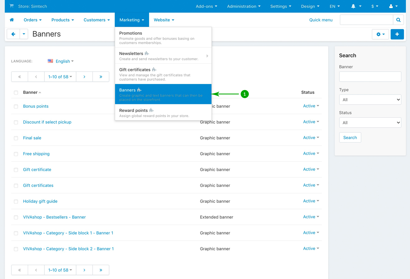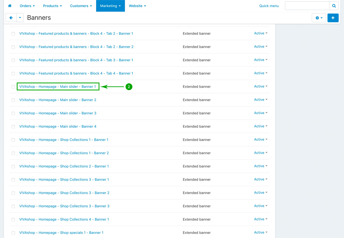 Scroll down and look for the “VIVAshop - Homepage - Main slider - Banner 1” banner, and click on it