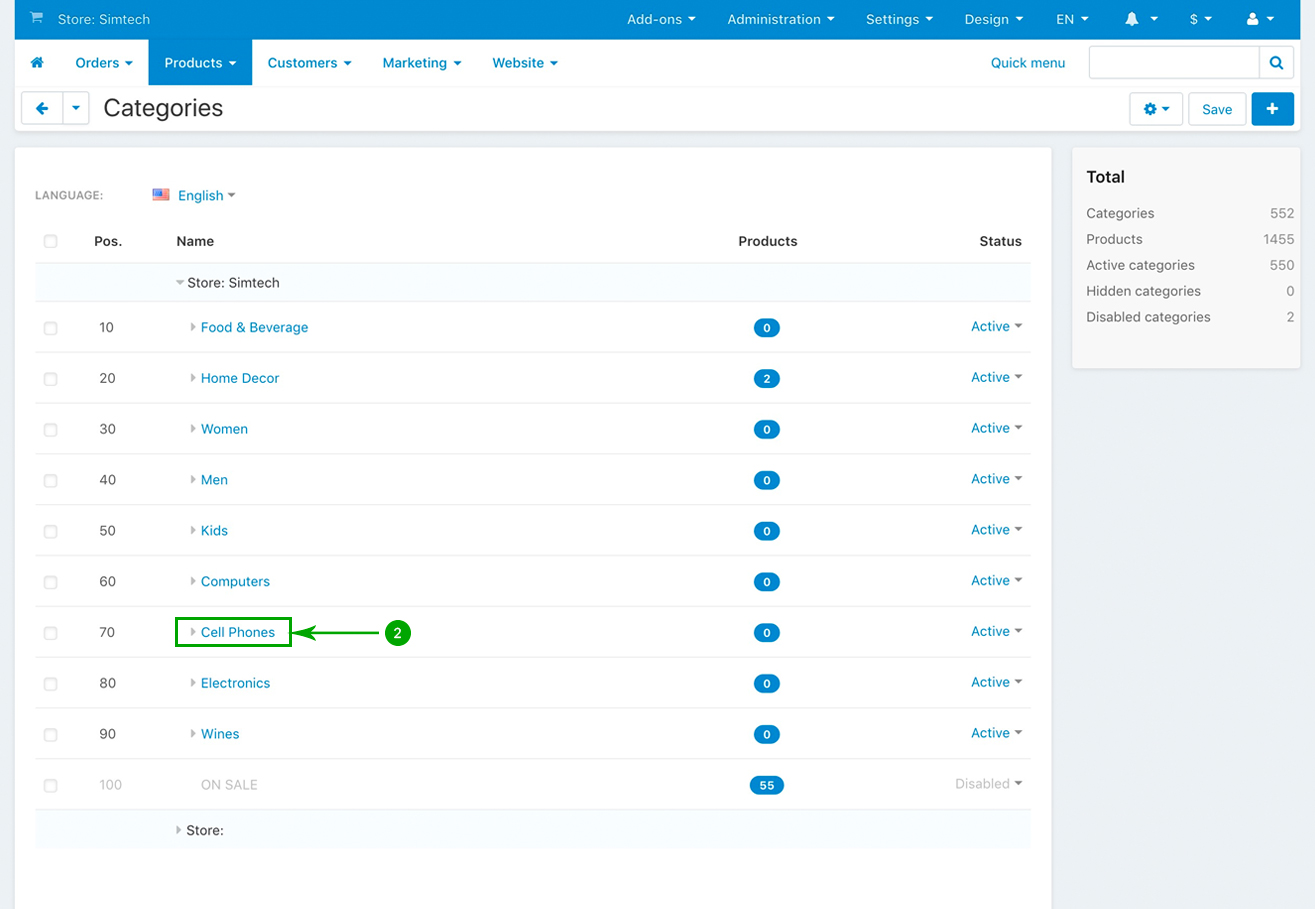 In the next page you’ll see a list of all of your first level categories. Click on a first level category that you to edit. In our example, we’ll edit the first level category called “Cell Phones”, so, we’ll click it.