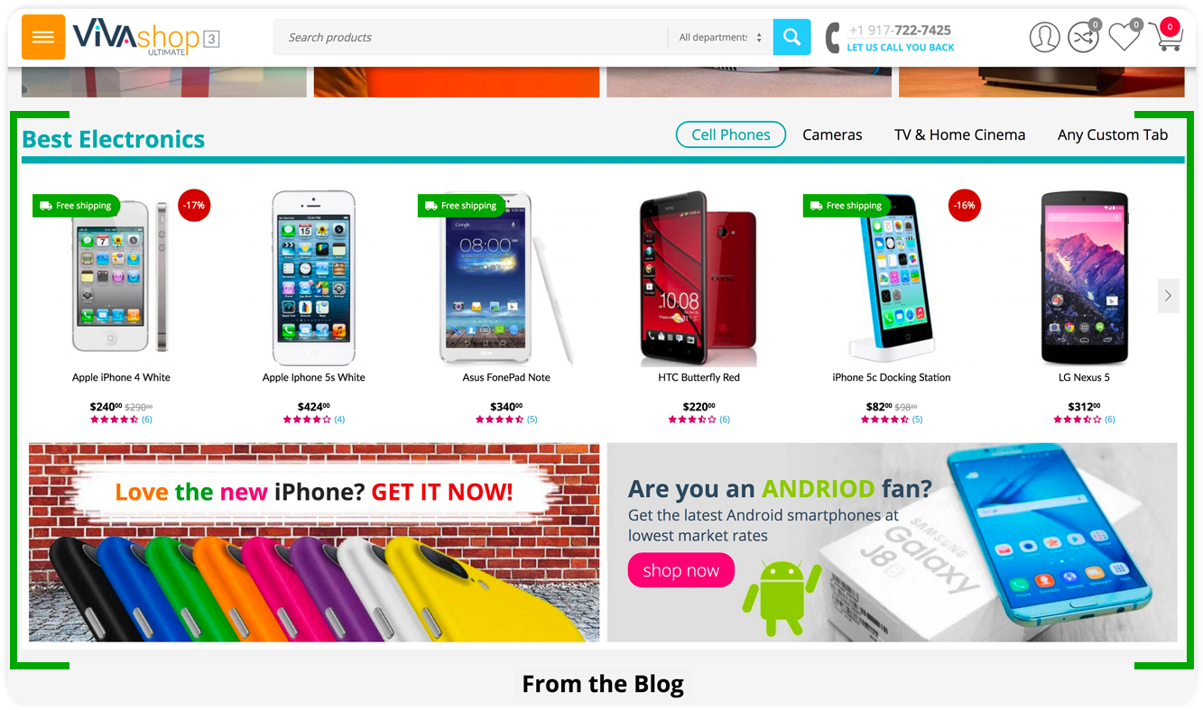 The “Featured Product And Banner Tabs” add-on allows you to add un unlimited number of customizable tabs per each block. featuring any products of your choice, as well as up to 2 banners per each tab. For Multi-Vendor users, this can also be a great monetizing tool as you can promote any products of your Vendors, as well as promote anything you want though the use of your banners. In these blocks you can add extended banners that you have already learned how to create under section “Extended Banners Pro”.