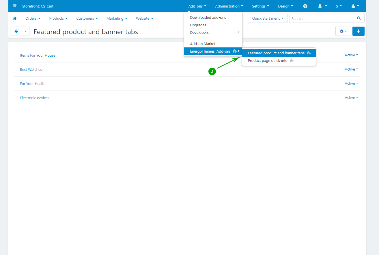 Once you have created your banners, go to “EnergoThemes: Add-ons” - “Featured product and banner tabs”