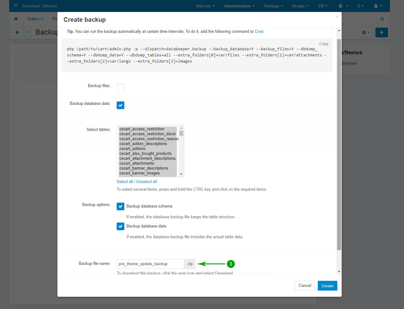 We STRONGLY recommend making a local backup of all your files and the database, or at the very least use the built in CS-Cart database backup functionality before making any updates or major customizations to your store. To create a backup using the CS-Cart functionality, please follow the steps below: