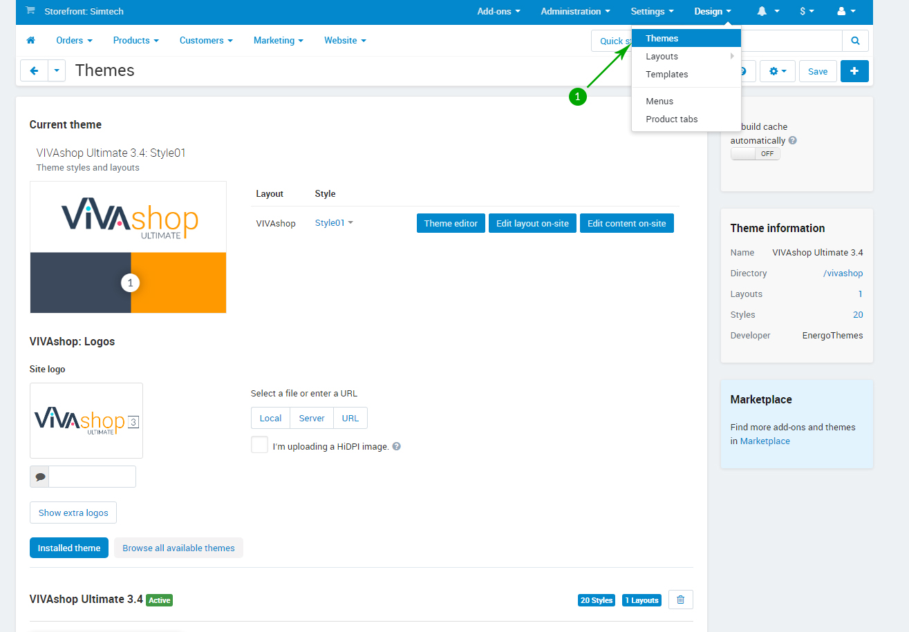 Log into your Administrator area of your CS-Cart installation and navigate to "Design" - "Themes"