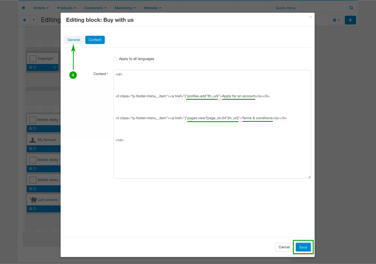 Repeat the steps above in order to add content to all of the other blocks in the the footer of your VIVAshop Ultimate.